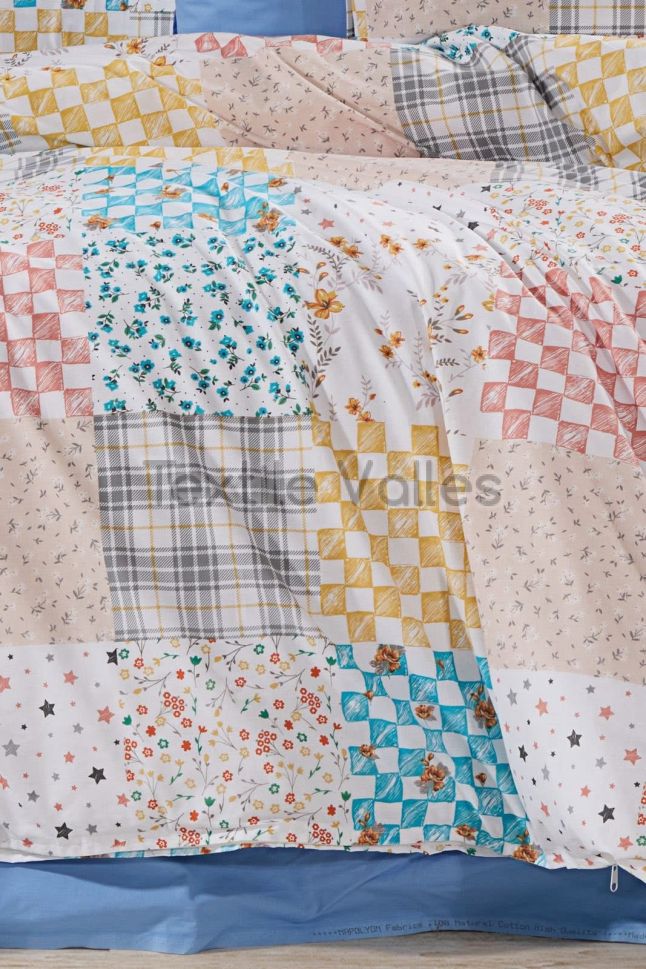 Насладете се на спокоен сън с нашия спален комплект, включващ два плика с размери 150/220 см, чаршаф с ластик 180/200/30 см и две шарени калъфки 60/80 см. Изработен от 100% памук Ранфорс, 62 нишки/см2, гарантиращ здравина и мекота.