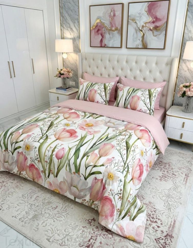 Дизайнът на спалния комплект е модерен и елегантен, с нежни глухарчета, които ще добавят стил и изисканост към вашата спалня. Цветовете са внимателно подбрани, за да създадат усещане за спокойствие и хармония, което е идеално за релаксираща обстановка.