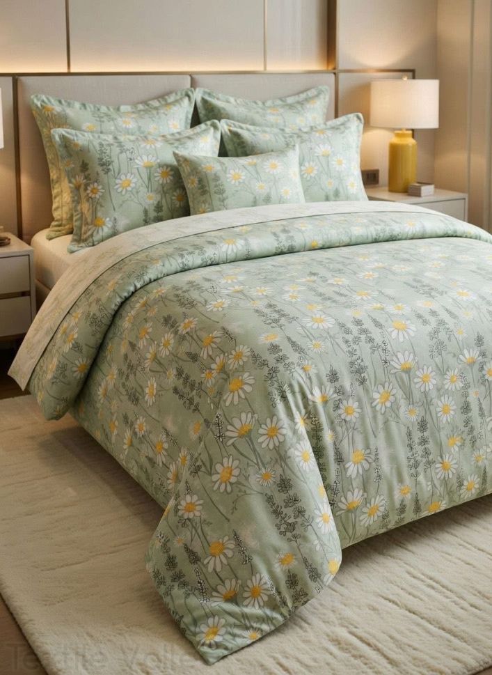 Насладете се на нежност и комфорт със спален комплект от 100% памучен ранфорс, 62 нишки/см2! Комплектът включва два плика с размери 150х220 см, долен чаршаф 220х240 см и 4 калъфки 50х70 см.